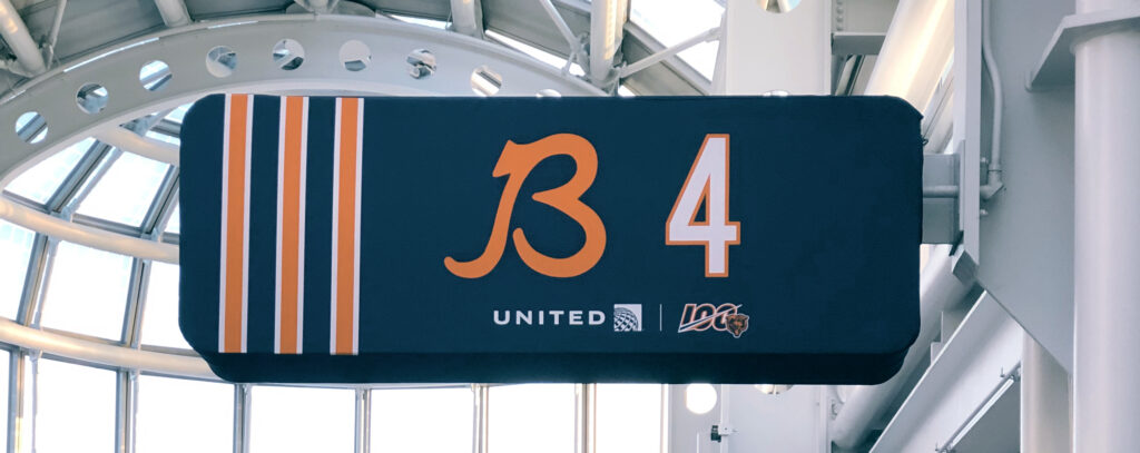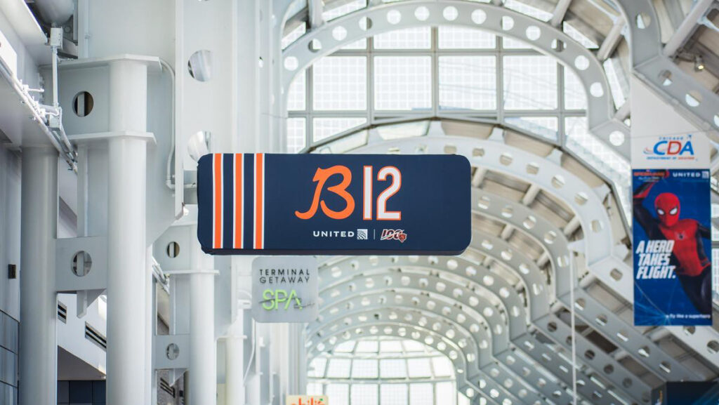 United Airlines had a rare asset: home field advantage at O’Hare — the front door of Chicago. With the Bears’ 100th season arriving, the opportunity wasn’t to run a sponsorship. It was to turn the airport itself into the world’s largest Bears tribute.
